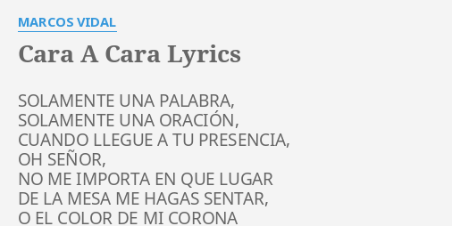 Cara A Cara Lyrics By Marcos Vidal Solamente Una Palabra Solamente